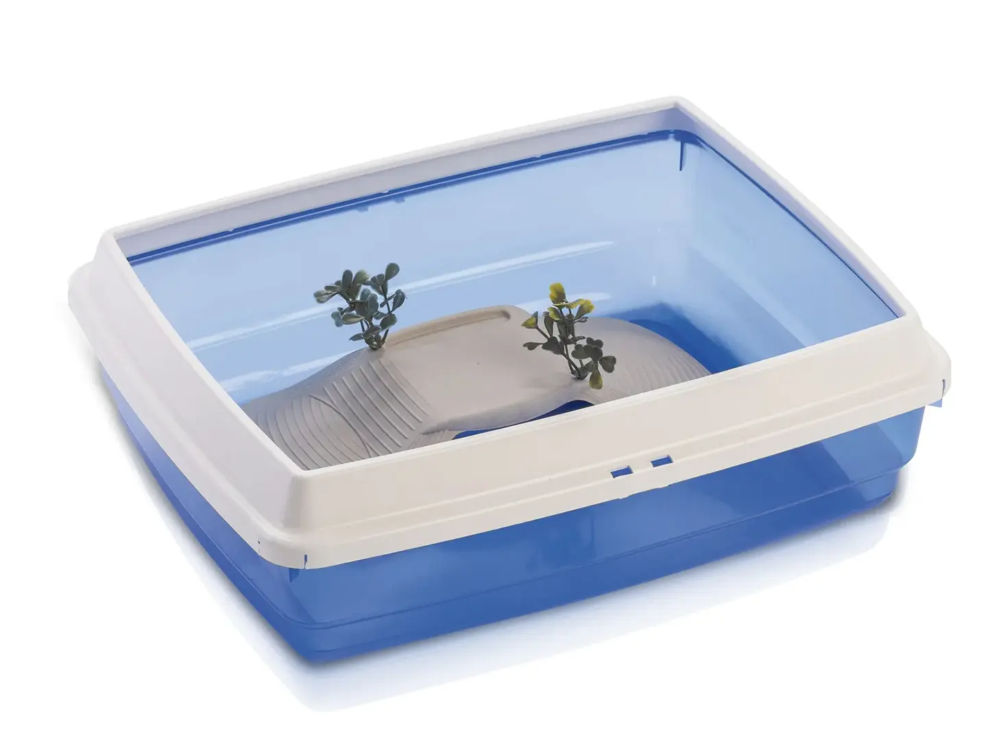Акватеррариум сделан из прочного пластика, внутри есть горка и растения.