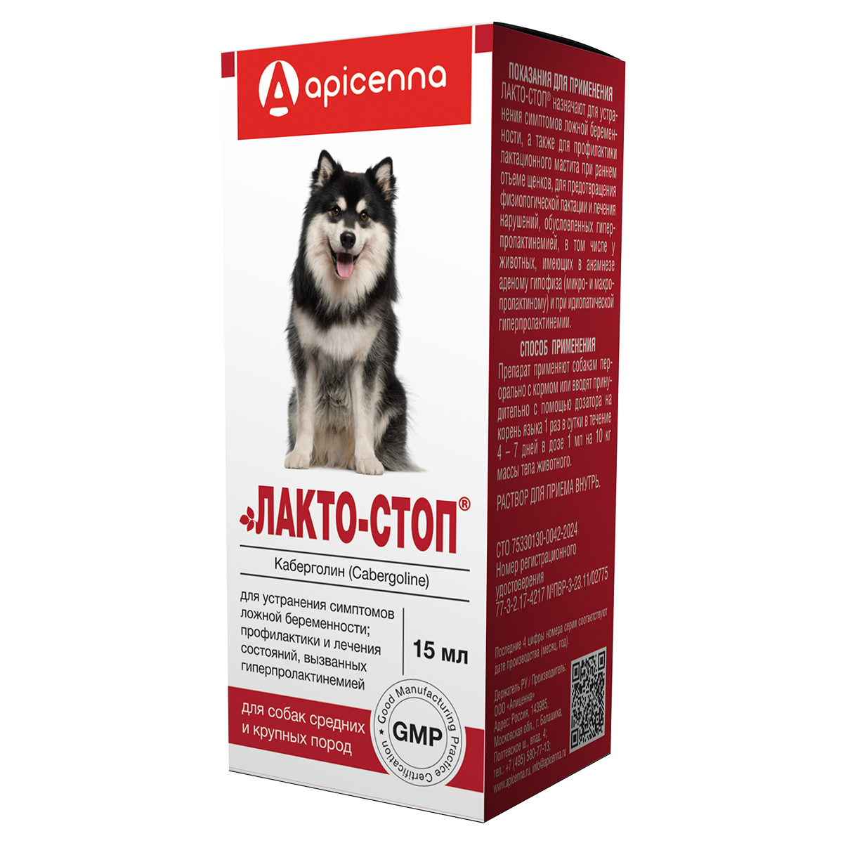 Apicenna Лактостоп - это препарат для устранения симптомов ложной беременности; профилактика и лечения состояний, вызванных гиперпролактинемией у собак.